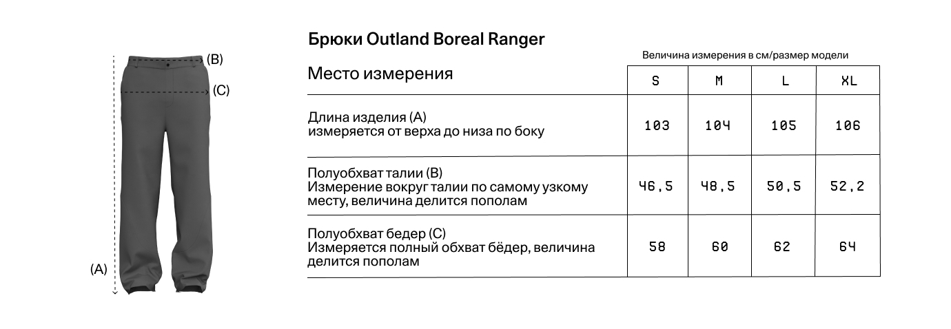 Таблица размеров Outland Boreal Ranger — потому что непогода не отменяет исследование
